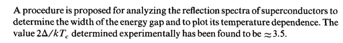 A procedure is proposed for analyzing the reflection spectra of superconductors to determine the width of the energy gap and to plot its temperature dependence. The value 2L/kTc determined experimentally has been found to be ~ 3.5.