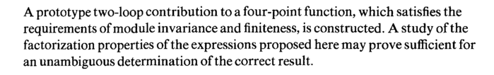 A prototype two-loop contribution to a four-point function, which satisfies the requirements of module invariance and finiteness, is constructed. A study of the factorization properties of the expressions proposed here may prove sufficient for an unambiguous determination of the correct result.