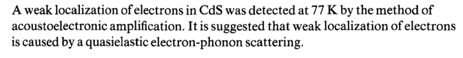 A weak localization of electrons in CdS was detected at 77 К by the method of acoustoelectronic amplification. It is suggested that weak localization of electrons is caused by a quasielastic electron-phonon scattering.
