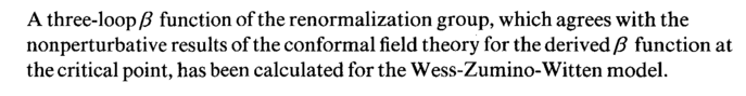 A three-loop β function of the renormalization group, which agrees with the nonperturbative results of the conformal field theory for the derived/? function at the critical point, has been calculated for the Wess-Zumino-Witten model.