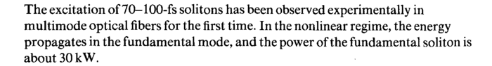 The excitation of70-100-fs solitons has been observed experimentally in multimode optical fibers for the first time. In the nonlinear regime, the energy propagates in the fundamental mode, and the power of the fundamental soliton is about 30 kW.