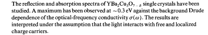 The reflection and absorption spectra of YBa2Cu307 _ δ single crystals have been studied. A maximum has been observed at —0.3 eV against the background Drude dependence of the optical-frequency conductivity σ(ω). The results are interpreted under the assumption that the light interacts with free and localized charge carriers.