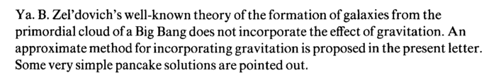 Ya. В. ZePdovich's well-known theory of the formation of galaxies from the primordial cloud of a Big Bang does not incorporate the effect of gravitation. An approximate method for incorporating gravitation is proposed in the present letter. Some very simple pancake solutions are pointed out.