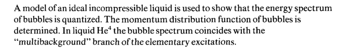 A model of an ideal incompressible liquid is used to show that the energy spectrum of bubbles is quantized. The momentum distribution function of bubbles is determined. In liquid He4 the bubble spectrum coincides with the "multibackground" branch of the elementary excitations.