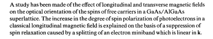 A study has been made of the effect of longitudinal and transverse magnetic fields on the optical orientation of the spins of free carriers in a GaAs/AlGaAs superlattice. The increase in the degree of spin polarization of photoelectrons in a classical longitudinal magnetic field is explained on the basis of a suppression of spin relaxation caused by a splitting of an electron miniband which is linear in k.