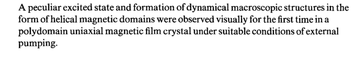 A peculiar excited state and formation of dynamical macroscopic structures in the form of helical magnetic domains were observed visually for the first time in a polydomain uniaxial magnetic film crystal under suitable conditions of external pumping.