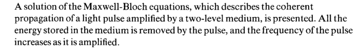 A solution of the Maxwell-Bloch equations, which describes the coherent propagation of a light pulse amplified by a two-level medium, is presented. All the energy stored in the medium is removed by the pulse, and the frequency of the pulse increases as it is amplified.