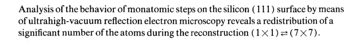 Analysis of the behavior of monatomic steps on the silicon (111) surface by means of ultrahigh-vacuum reflection electron microscopy reveals a redistribution of a significant number of the atoms during the reconstruction (lXl)«^(7X7).