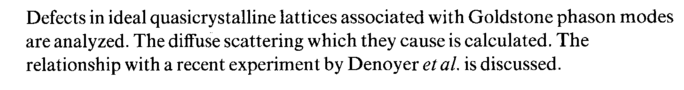 Defects in ideal quasicrystalline lattices associated with Goldstone phason modes are analyzed. The diffuse scattering which they cause is calculated. The relationship with a recent experiment by Denoyer etal is discussed.