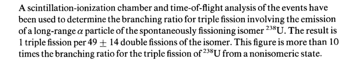 A scintillation-ionization chamber and time-of-flight analysis of the events have been used to determine the branching ratio for triple fission involving the emission of a long-range a particle of the spontaneously fissioning isomer 238U. The result is 1 triple fission per 49+14 double fissions of the isomer. This figure is more than 10 times the branching ratio for the triple fission of 238U from a nonisomeric state.