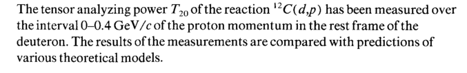 The tensor analyzing power T20 of the reaction i2C(d,p) has been measured over the interval 0-0.4 GeV/c of the proton momentum in the rest frame of the deuteron. The results of the measurements are compared with predictions of various theoretical models.