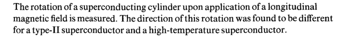 The rotation of a superconducting cylinder upon application of a longitudinal magnetic field is measured. The direction of this rotation was found to be different for a type-II superconductor and a high-temperature superconductor.
