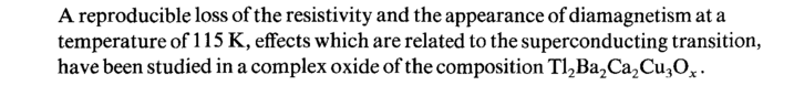 A reproducible loss of the resistivity and the appearance of diamagnetism at a temperature of 115 K, effects which are related to the superconducting transition, have been studied in a complex oxide of the composition ô12÷Á2óÁ2óÉ3ïÌ..