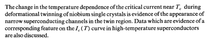 The change in the temperature dependence of the critical current near Tc during deformational twinning of niobium single crystals is evidence of the appearance of narrow superconducting channels in the twin region. Data which are evidence of a corresponding feature on the/c (T) curve in high-temperature superconductors are also discussed.