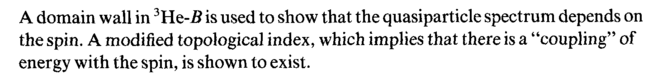 A domain wall in 3He-5 is used to show that the quasiparticle spectrum depends on the spin. A modified topological index, which implies that there is a "coupling" of energy with the spin, is shown to exist.