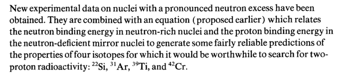 New experimental data on nuclei with a pronounced neutron excess have been obtained. They are combined with an equation (proposed earlier) which relates the neutron binding energy in neutron-rich nuclei and the proton binding energy in the neutron-deficient mirror nuclei to generate some fairly reliable predictions of the properties of four isotopes for which it would be worthwhile to search for two-proton radioactivity: 22Si, 31Ar, 39Ti, and 42Cr.