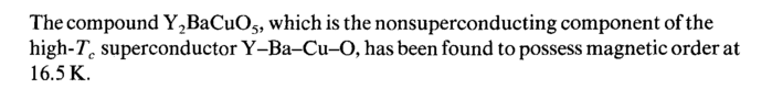 superconductor Y-Ba-Cu-O, has been found to possess magnetic order at 16.5 K.