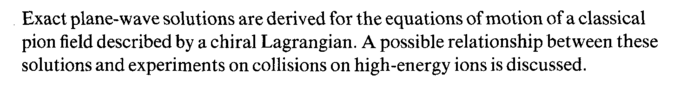 Exact plane-wave solutions are derived for the equations of motion of a classical pion field described by a chiral Lagrangian. A possible relationship between these solutions and experiments on collisions on high-energy ions is discussed.