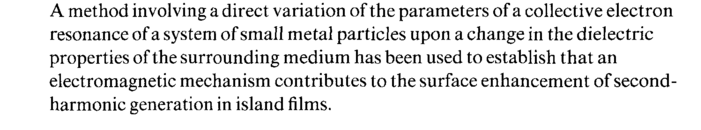 A method involving a direct variation of the parameters of a collective electron resonance of a system of small metal particles upon a change in the dielectric properties of the surrounding medium has been used to establish that an electromagnetic mechanism contributes to the surface enhancement of second-harmonic generation in island films.