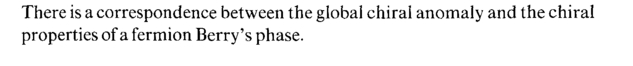 There is a correspondence between the global chiral anomaly and the chiral properties of a fermion Berry's phase.