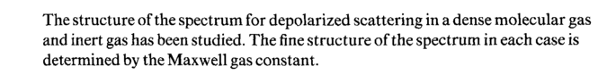 The structure of the spectrum for depolarized scattering in a dense molecular gas and inert gas has been studied. The fine structure of the spectrum in each case is determined by the Maxwell gas constant.