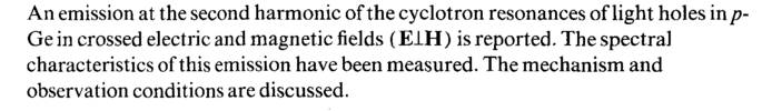 An emission at the second harmonic of the cyclotron resonances of light holes in p-Ge in crossed electric and magnetic fields (E1H) is reported. The spectral characteristics of this emission have been measured. The mechanism and observation conditions are discussed.