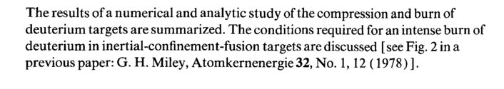 The results of a numerical and analytic study of the compression and burn of deuterium targets are summarized. The conditions required for an intense burn of deuterium in inertial-confinement-fusion targets are discussed [see Fig. 2 in a previous paper: G. H. Miley, Atomkernenergie 32, No. 1, 12 (1978)].