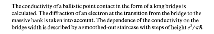 The conductivity of a ballistic point contact in the form of a long bridge is calculated. The diffraction of an electron at the transition from the bridge to the massive bank is taken into account. The dependence of the conductivity on the bridge width is described by a smoothed-out staircase with steps of height e2/irfi.