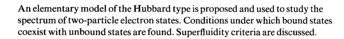 An elementary model of the Hubbard type is proposed and used to study the spectrum of two-particle electron states. Conditions under which bound states coexist with unbound states are found. Superfluidity criteria are discussed.