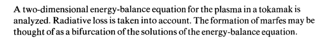 A two-dimensional energy-balance equation for the plasma in a tokamak is analyzed. Radiative loss is taken into account. The formation of marfes may be thought of as a bifurcation of the solutions of the energy-balance equation.