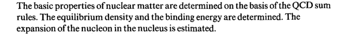 The basic properties of nuclear matter are determined on the basis of the QCD sum rules. The equilibrium density and the binding energy are determined. The expansion of the nucleon in the nucleus is estimated.