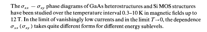 The σχχ — axy phase diagrams of GaAs heterostructures and Si MOS structures have been studied over the temperature interval 0.3-10 К in magnetic fields up to 12 T. In the limit of vanishingly low currents and in the limit 0, the dependence σχχ (σ ) takes quite different forms for different energy sublevels.