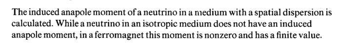 The induced anapole moment of a neutrino in a medium with a spatial dispersion is calculated. While a neutrino in an isotropic medium does not have an induced anapole moment, in a ferromagnet this moment is nonzero and has a finite value.