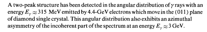 A two-peak structure has been detected in the angular distribution of γ rays with an energy Εγ ~ 315 MeV emitted by 4.4-Ge V electrons which move in the (Oil) plane of diamond single crystal. This angular distribution also exhibits an azimuthal asymmetry of the incoherent part of the spectrum at an energy Ε ~ 3 GeV.