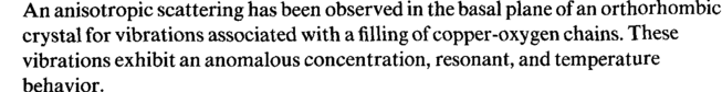 An anisotropic scattering has been observed in the basal plane of an orthorhombic crystal for vibrations associated with a filling of copper-oxygen chains. These vibrations exhibit an anomalous concentration, resonant, and temperature behavior.