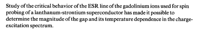 Study of the critical behavior of the ESR line of the gadolinium ions used for spin probing of a lanthanum-strontium superconductor has made it possible to determine the magnitude of the gap and its temperature dependence in the charge-excitation spectrum.