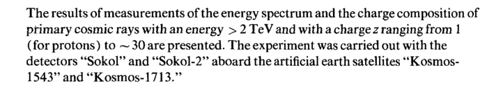 The results of measurements of the energy spectrum and the charge composition of primary cosmic rays with an energy > 2 TeV and with a charge ζ ranging from 1 (for protons) to ~ 30 are presented. The experiment was carried out with the detectors "Sokol" and "Sokol~2" aboard the artificial earth satellites "Kosmos-1543" and "Kosmos-1713."