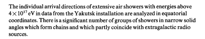 The individual arrival directions of extensive air showers with energies above 4 Χ1017 eV in data from the Yakutsk installation are analyzed in equatorial coordinates. There is a significant number of groups of showers in narrow solid angles which form chains and which partly coincide with extragalactic radio sources.