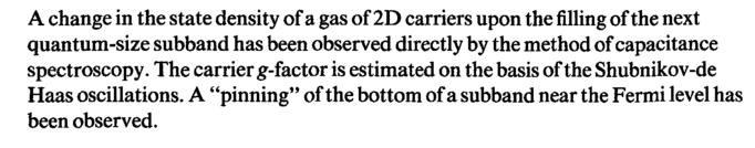 A change in the state density of a gas of 2D carriers upon the filling of the next quantum-size subband has been observed directly by the method of capacitance spectroscopy. The carrier g-factor is estimated on the basis of the Shubnikov-de Haas oscillations. A "pinning" of the bottom of a subband near the Fermi level has been observed.