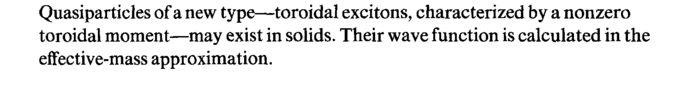 Quasiparticles of a new type—toroidal excitons, characterized by a nonzero toroidal moment—may exist in solids. Their wave function is calculated in the eifective-mass approximation.