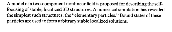 A model of a two-component nonlinear field is proposed for describing the self-focusing of stable, localized 3D structures. A numerical simulation has revealed the simplest such structures: the "elementary particles." Bound states of these particles are used to form arbitrary stable localized solutions.