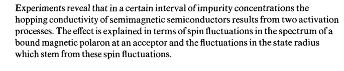 Experiments reveal that in a certain interval of impurity concentrations the hopping conductivity of semimagnetic semiconductors results from two activation processes. The effect is explained in terms of spin fluctuations in the spectrum of a bound magnetic polaron at an acceptor and the fluctuations in the state radius which stem from these spin fluctuations.