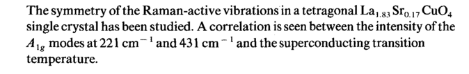 The symmetry of the Raman-active vibrations in a tetragonal La^ Sr017 Cu04 single crystal has been studied. A correlation is seen between the intensity of the Alg modes at 221 cm"1 and 431 cm"1 and the superconducting transition temperature.