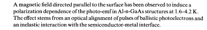 A magnetic field directed parallel to the surface has been observed to induce a polarization dependence of the photo-emf in Al-n-GaAs structures at 1.6-4.2 K. The effect stems from an optical alignment of pulses of ballistic photoelectrons and an inelastic interaction with the semiconductor-metal interface.