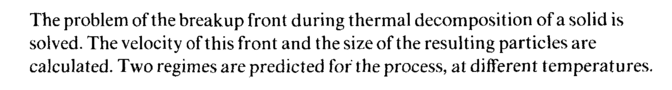 The problem of the breakup front during thermal decomposition of a solid is solved. The velocity of this front and the size of the resulting particles are calculated. Two regimes are predicted for the process, at different temperatures.