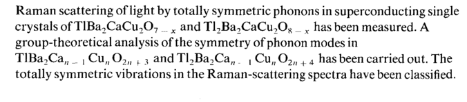 Raman scattering of light by totally symmetric phonons in superconducting single crystals of TlBa2CaCu207... x and Tl2Ba2CaCu208 _ x has been measured. A group-theoretical analysis of the symmetry of phonon modes in TlBa2Ca„ ι Cu„ 02n f 3 and Tl2Ba2Ca„. , Cu„ 02n + 4 has been carried out. The totally symmetric vibrations in the Raman-scattering spectra have been classified.