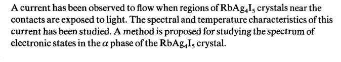 A current has been observed to flow when regions of RbAg4I5 crystals near the contacts are exposed to light. The spectral and temperature characteristics of this current has been studied. A method is proposed for studying the spectrum of electronic states in the a phase of the Rb Ag4I5 crystal.
