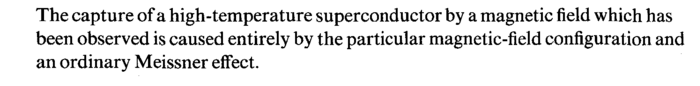 The capture of a high-temperature superconductor by a magnetic field which has been observed is caused entirely by the particular magnetic-field configuration and an ordinary Meissner effect.