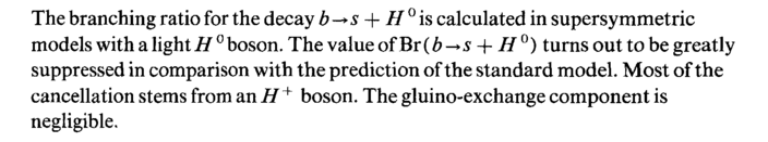 The branching ratio for the decay b-^s + Η 0 is calculated in supersymmetric models with a light Η 0 boson. The value of Br (b -> s + Η 0) turns out to be greatly suppressed in comparison with the prediction of the standard model. Most of the cancellation stems from an H+ boson. The gluino-exchange component is negligible.