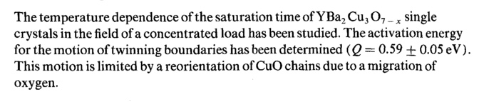 The temperature dependence of the saturation time of YBa2 Cu3 07 _ x single crystals in the field of a concentrated load has been studied. The activation energy for the motion of twinning boundaries has been determined (Q~ 0.59 + 0.05 eV). This motion is limited by a reorientation of CuO chains due to a migration of oxygen.